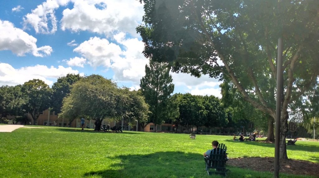 The university installed a geoexchange system under the Main Quad as the new source of heating and cooling for Rhoades Hall. Thirty four wells are buried five hundred feet deep, and are connected by seven miles of pipe. This ground-source heat pump system operates by continuously circulating liquid through the well-and-pipe system. The earth’s constant 58 degree temperature is used to warm the building in winter and cool it in the summer. UNC Asheville also has ground-source heat pump systems at the Sam Millar Facilities Complex, Pisgah House, and Whitesides Hall. The systems buried under the main quad (and the mini quad by Whitesides Hall) are ground source heat pumps.